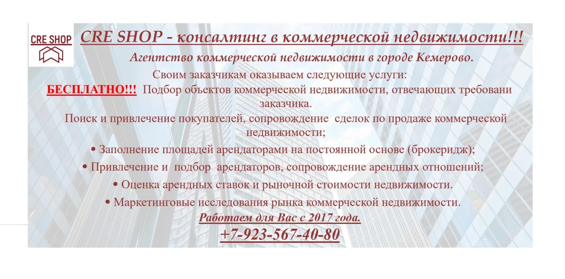 CRE SHOP - коммерческая недвижимость в Кемерово от собственников.